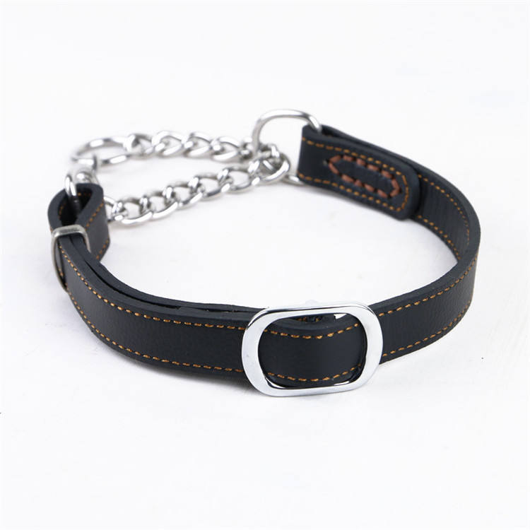 Collier de dressage réglable en cuir pour chien avec chaîne de serrage en acier inoxydable