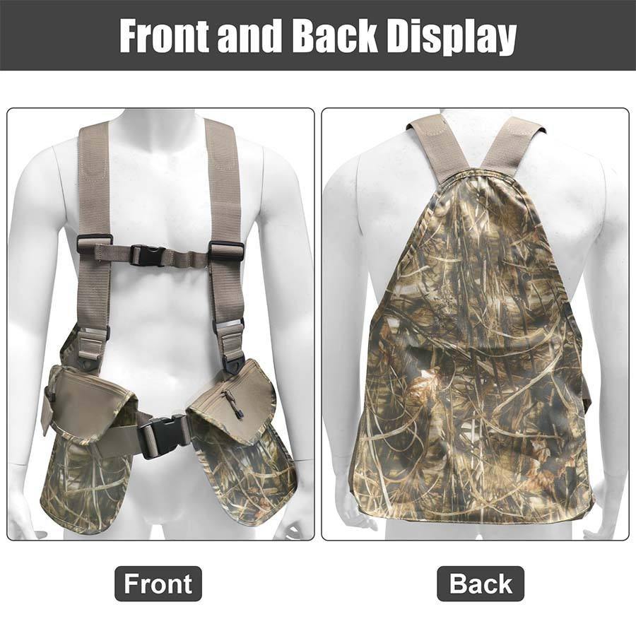 Gilet de chasse réglable avec sac à dos et pochette pour gibier, gilet de chasse tactique respirant avec sangles de poitrine et de taille, et poches pour équipement