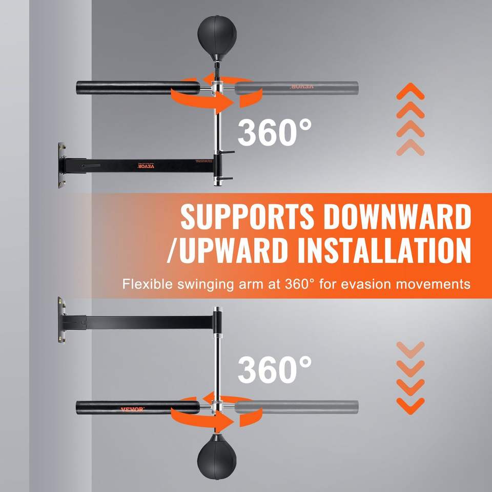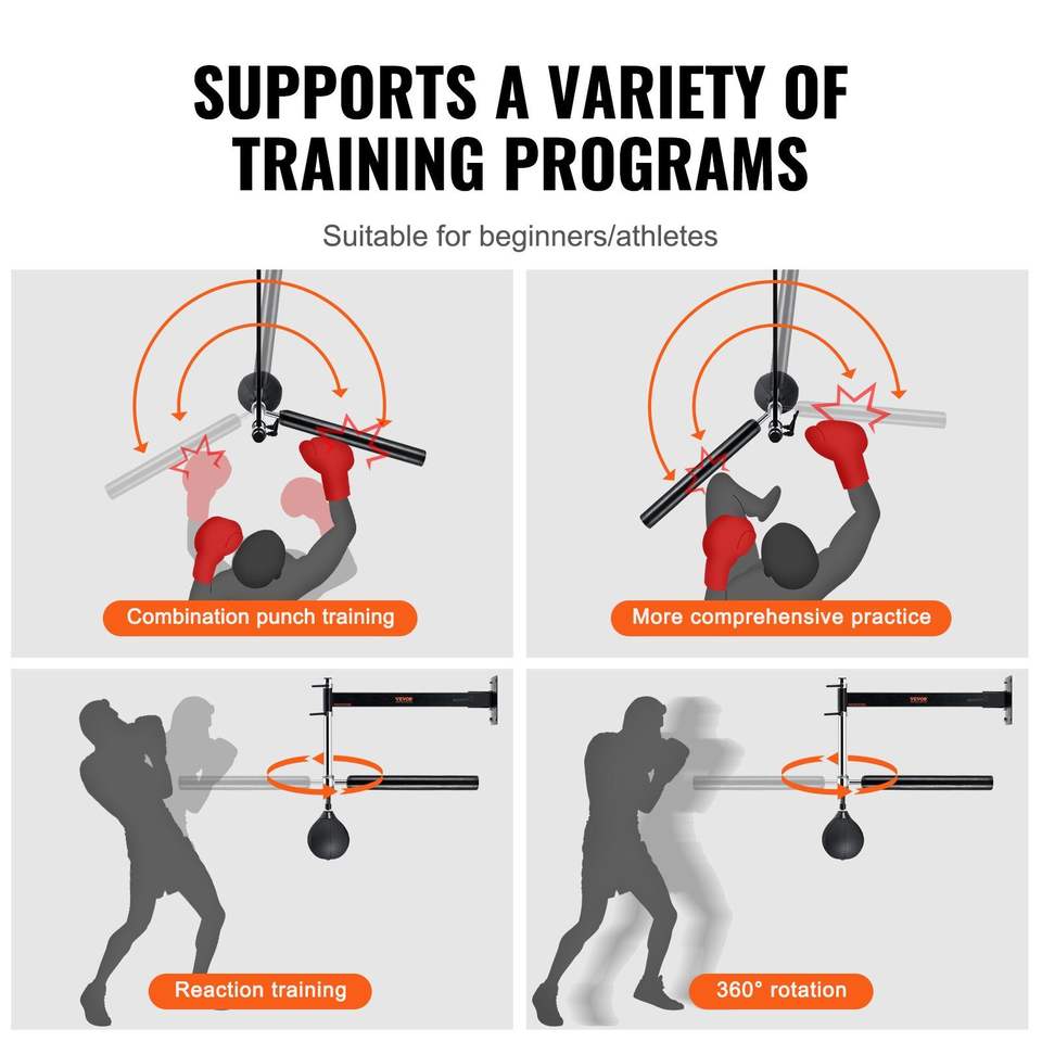 Machine d'entraînement de boxe murale réglable avec barre rotative, ballon de frappe et gants de réflexe