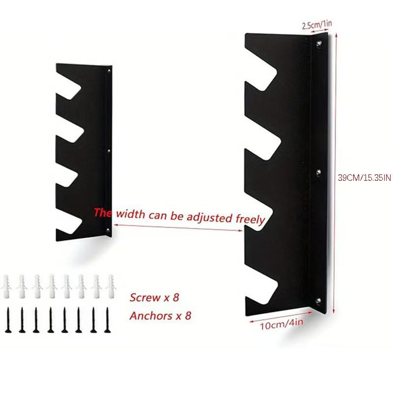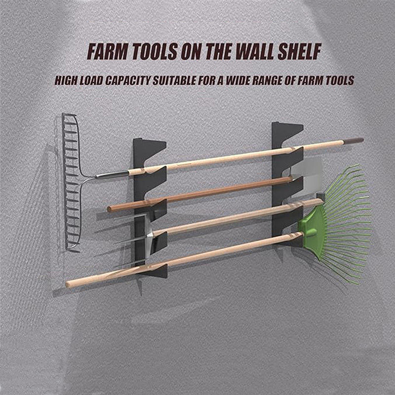 Organisateur d'outils mural réglable en acier robuste - Étagère de rangement de garage noire thermolaquée pour pelles, bêches et outils de jardin