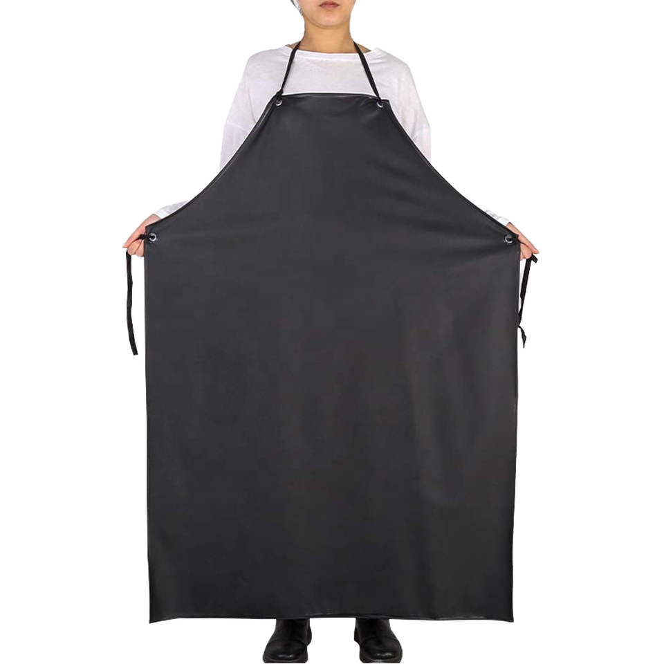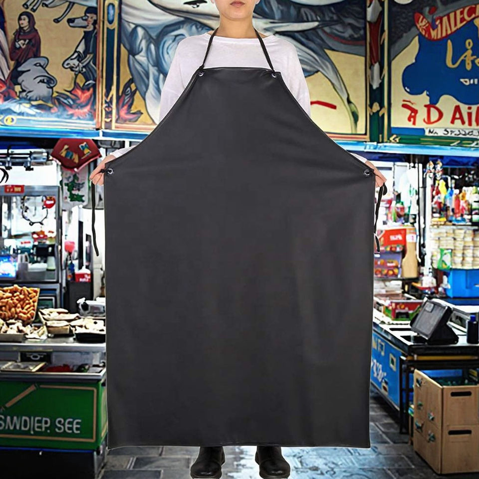 Tablier à bavette en PVC imperméable réglable Tabliers de travail noirs pour le nettoyage de la vaisselle Poissons Jardinage Boucher Chien Toilettage