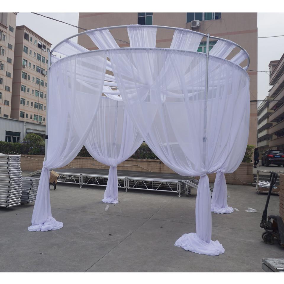 Kit de support de toile de fond réglable en aluminium pour mariage avec options de drapés multi-tissus, finition argentée, garantie de 3 ans