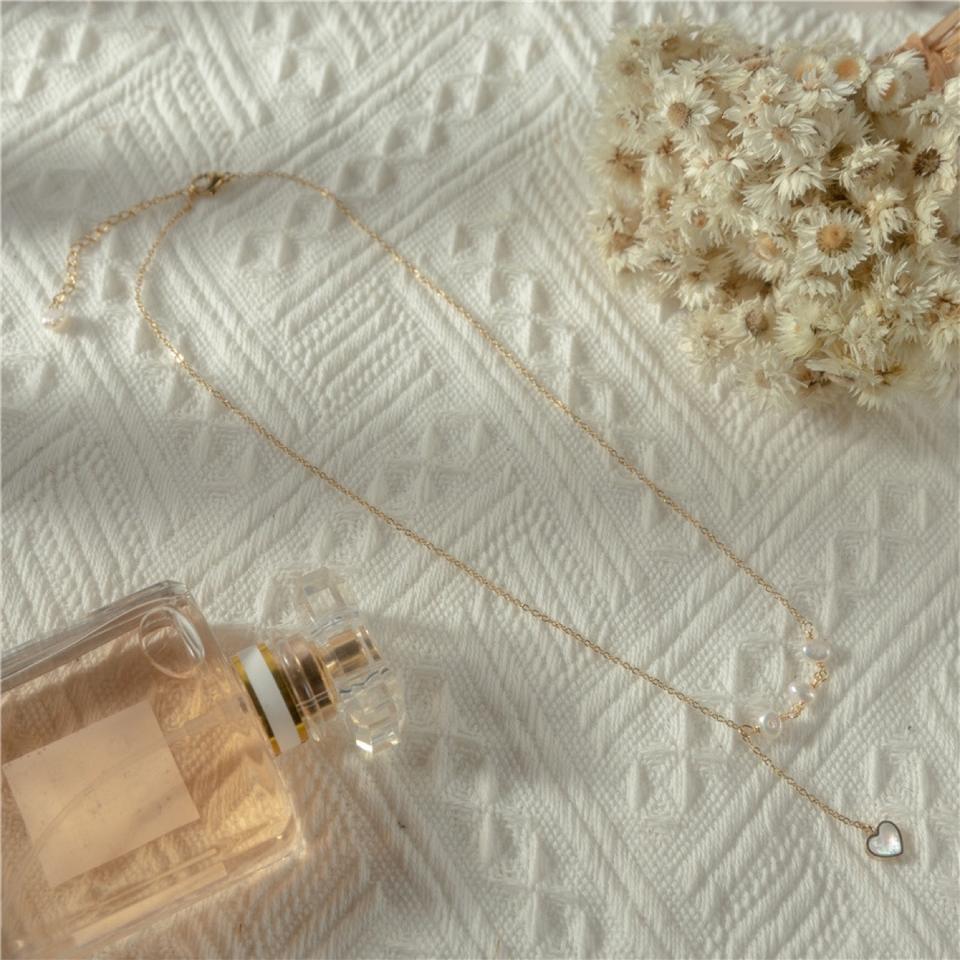 Collier en perles d'eau douce naturelles, simple, beau, inspiré des fées, avec chaîne claviculaire en forme de cœur de pêche, blanc réglable
