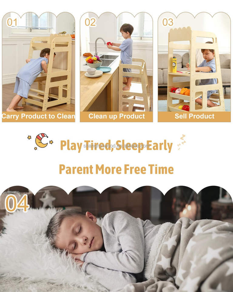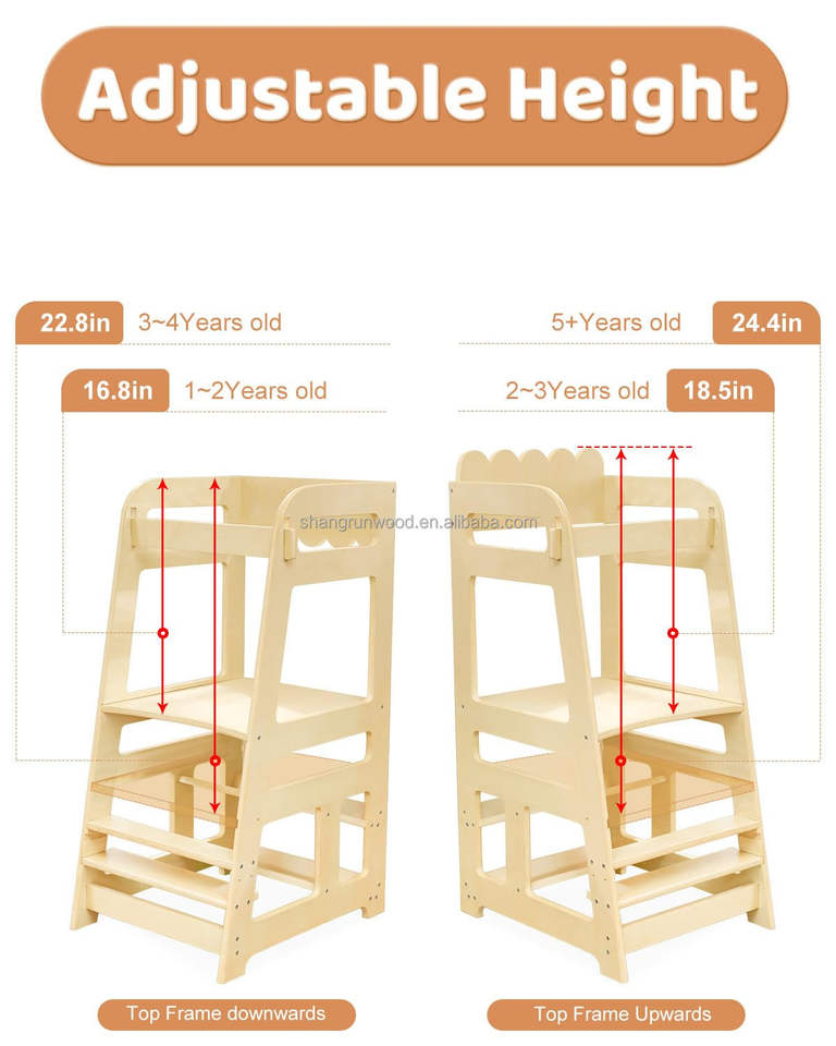 Support Montessori réglable en bois Tour d'apprentissage pour enfants Tabouret de cuisine et de salle à manger pour tout-petits et enfants pour hôtels