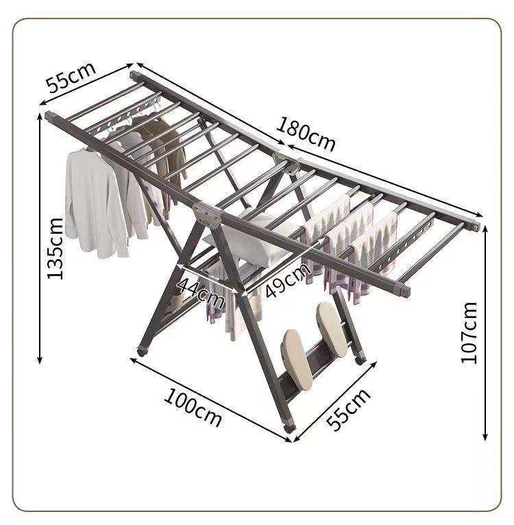 Support de séchage de vêtements à cadre en X réglable, support à linge pliable en aluminium pour chambre à coucher, cour, camping (rangement facile)