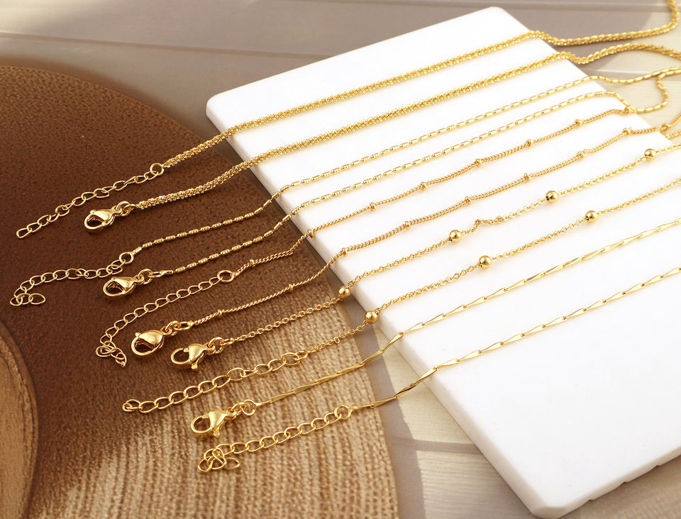 Collier ajustable à chaîne perlée plaquée or 18 carats avec motif de boule en or pour usage quotidien Collier à chaîne fine en gros
