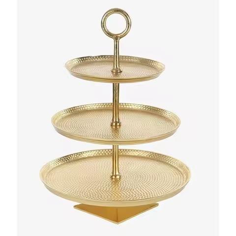 Support à gâteau en métal doré et verre à 2 niveaux avec poignée en forme de cœur pour l'affichage de la table de dessert de fête de mariage
