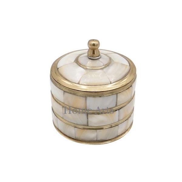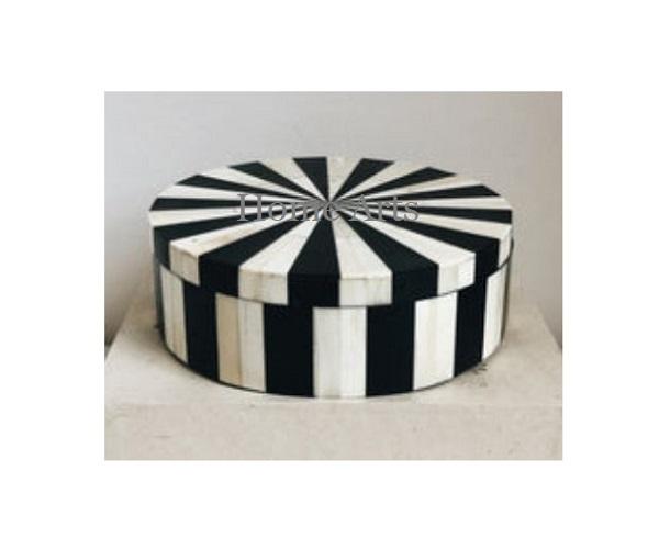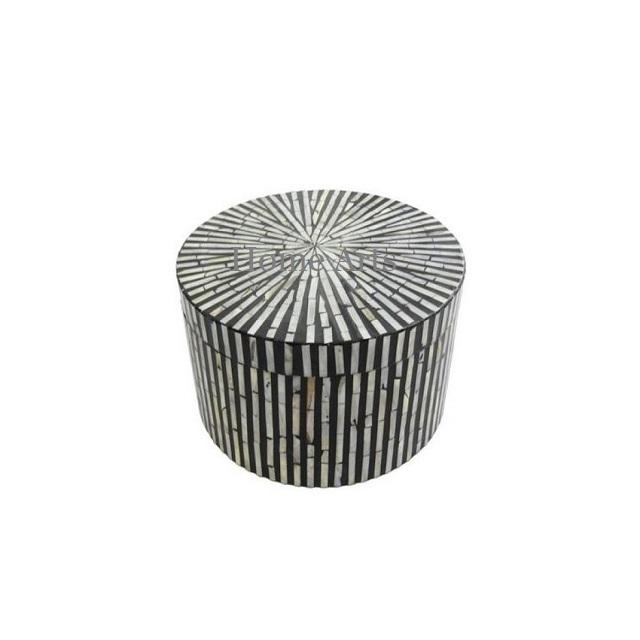 Boîte à bijoux de conception admirable, couleur noir et blanc, en bois et nacre, forme ronde, en gros