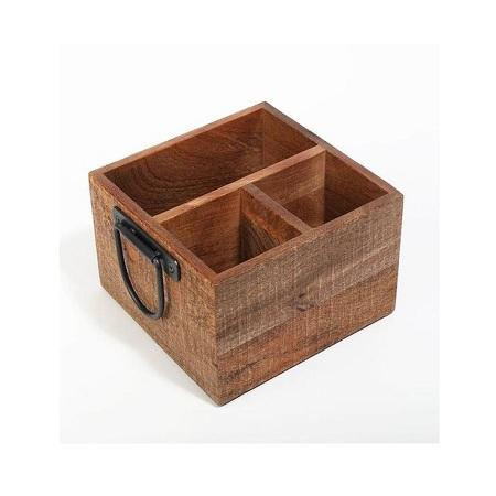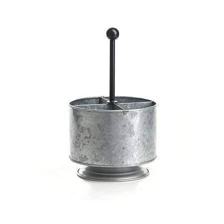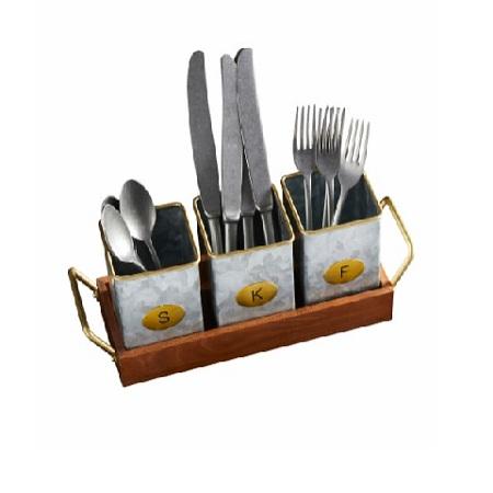Porte-couverts galvanisé au design admirable avec base en bois et poignée en métal pour la vaisselle et l'équipement hôtelier