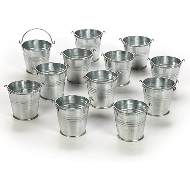 Seau en fer galvanisé au design admirable avec poignée en bois pour la décoration et le rangement de jardin et de maison, à prix économique