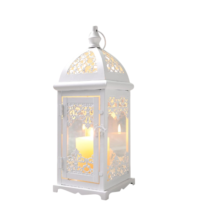 Lanterne à bougie en fer et verre au design admirable, finition blanche, pour la maison et le jardin, lanternes décoratives suspendues et au sol