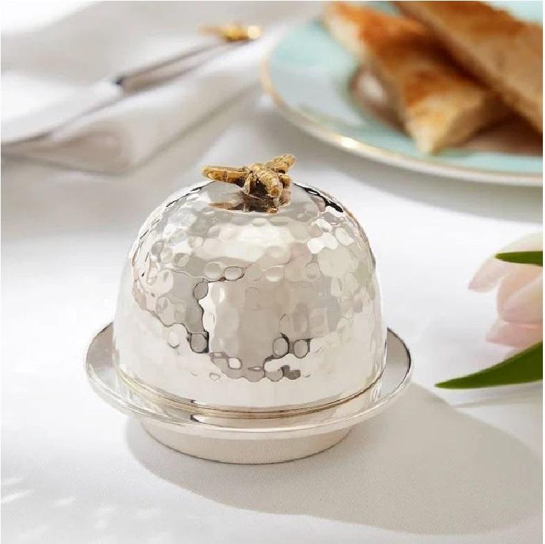 Beurrier en laiton finition argentée au design et à l'esthétique admirables pour une cuisine bien entretenue et un service pratique du beurre