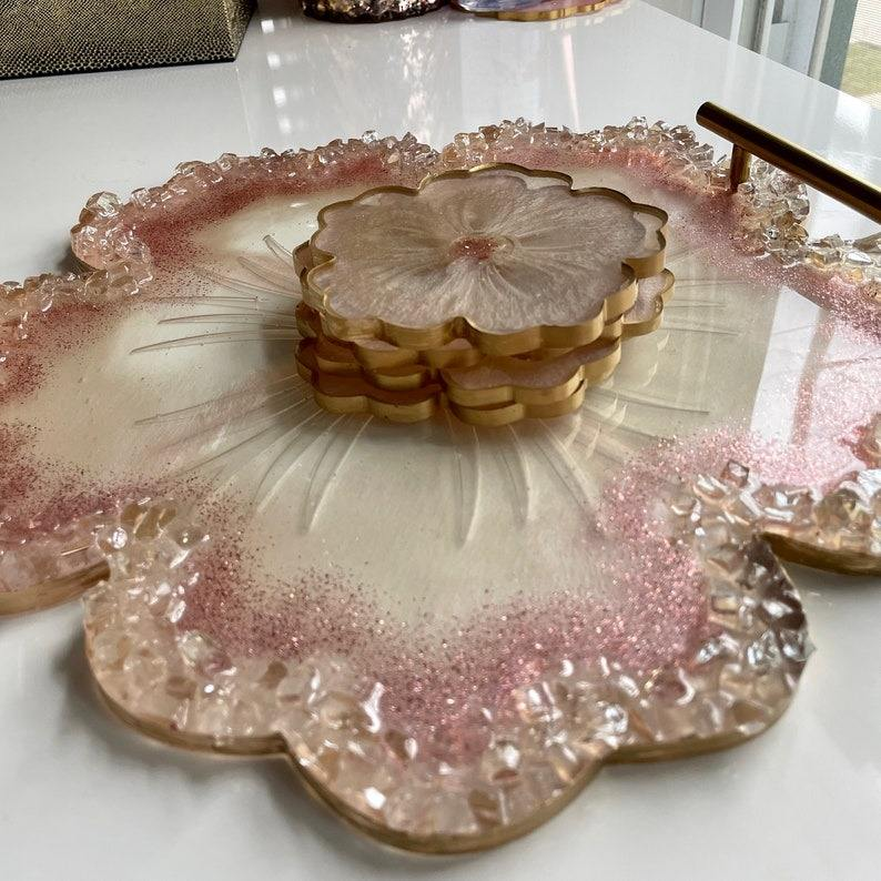 Plateau de service en résine au design admirable, excellente qualité et couleur résine noire avec sous-verre, plateau de service alimentaire en résine