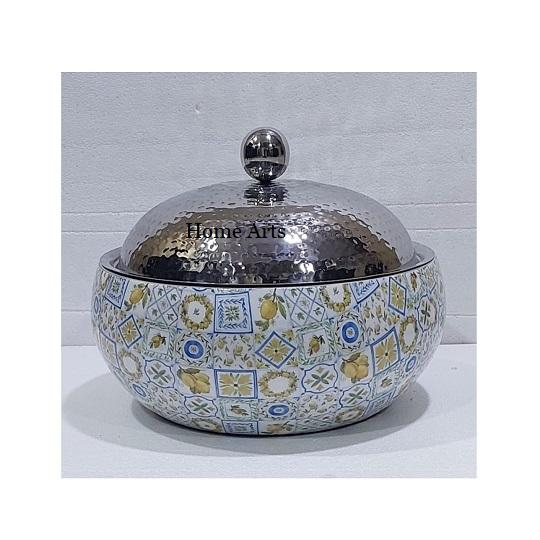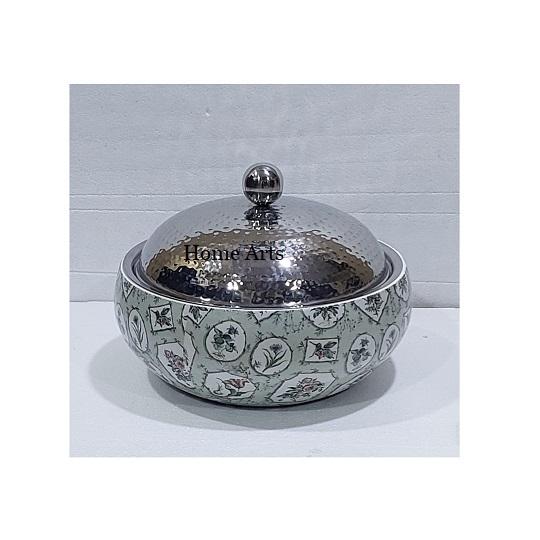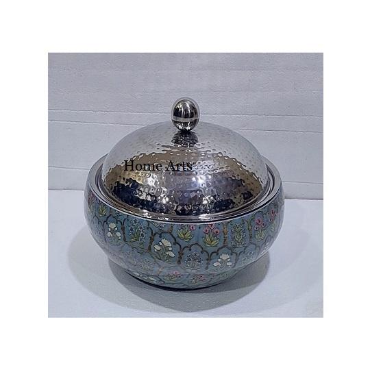 Plat à casserole de forme ronde de conception admirable avec le travail de Meana et la marmite de couvercle martelé d'acier inoxydable