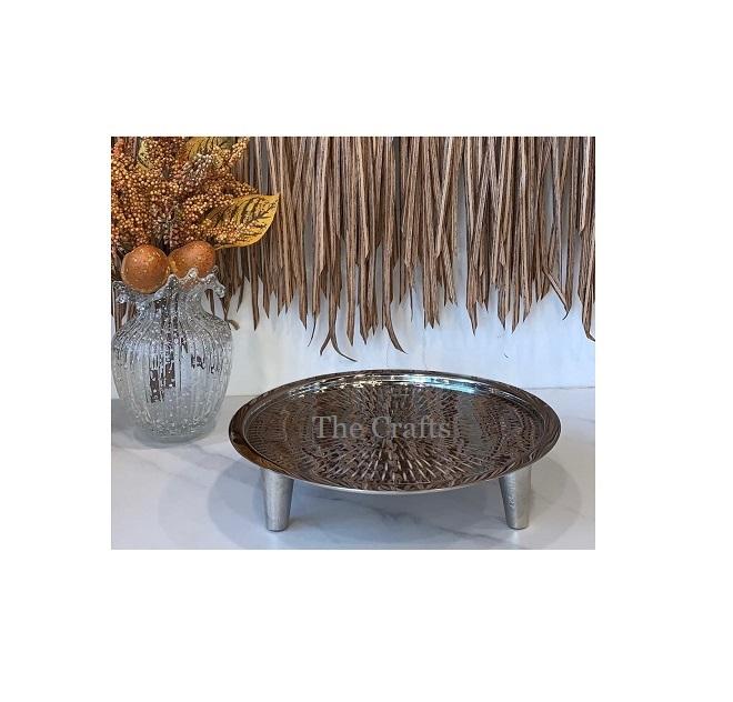 Plateau de service en acier inoxydable de qualité supérieure, couleur or, forme ronde, plateau de petit-déjeuner avec pieds, à prix abordables