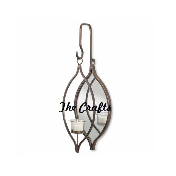 Porte-bougie mural au design admirable en métal et miroir, porte-bougie mural suspendu pour les meilleures ventes