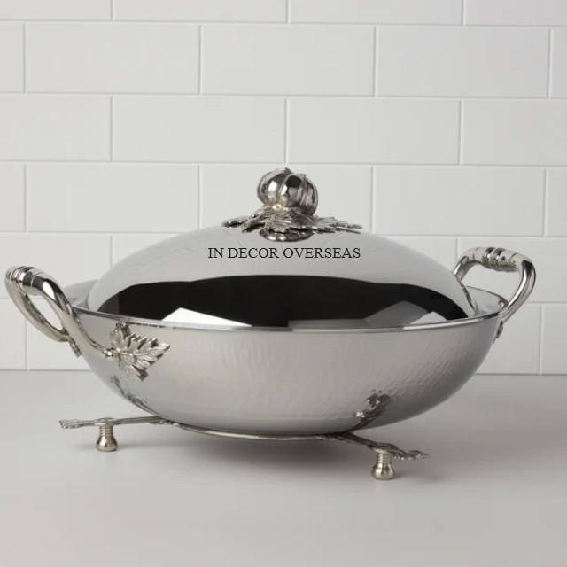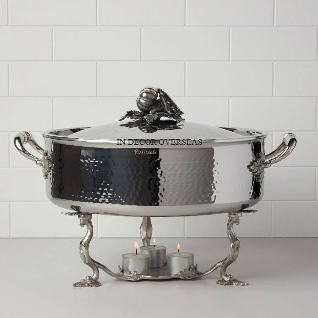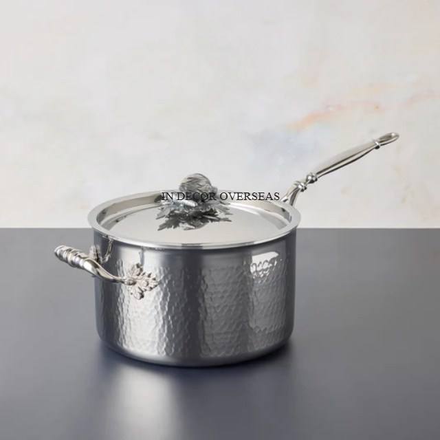 Admirable designer de qualité supérieure en métal martelé Texture forme ronde argent brillant poli Ruffoni pot avec poignées