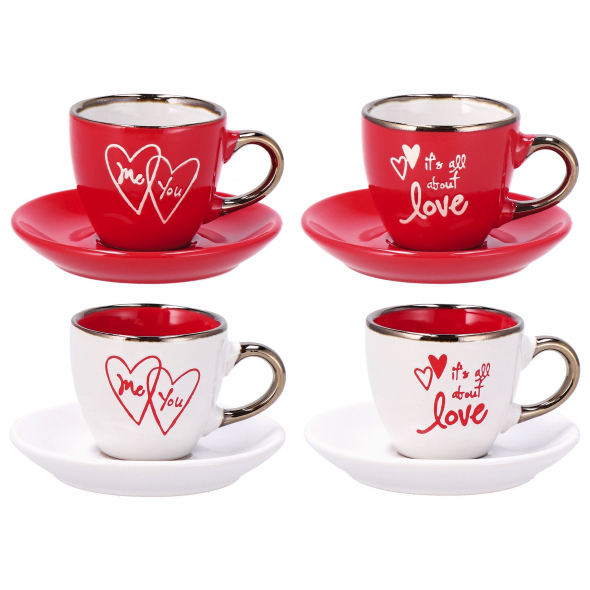 Ensemble de tasses à café en céramique Ador, 4 pièces, design cœur rouge et blanc, pour les couples, cadeau de la Saint-Valentin