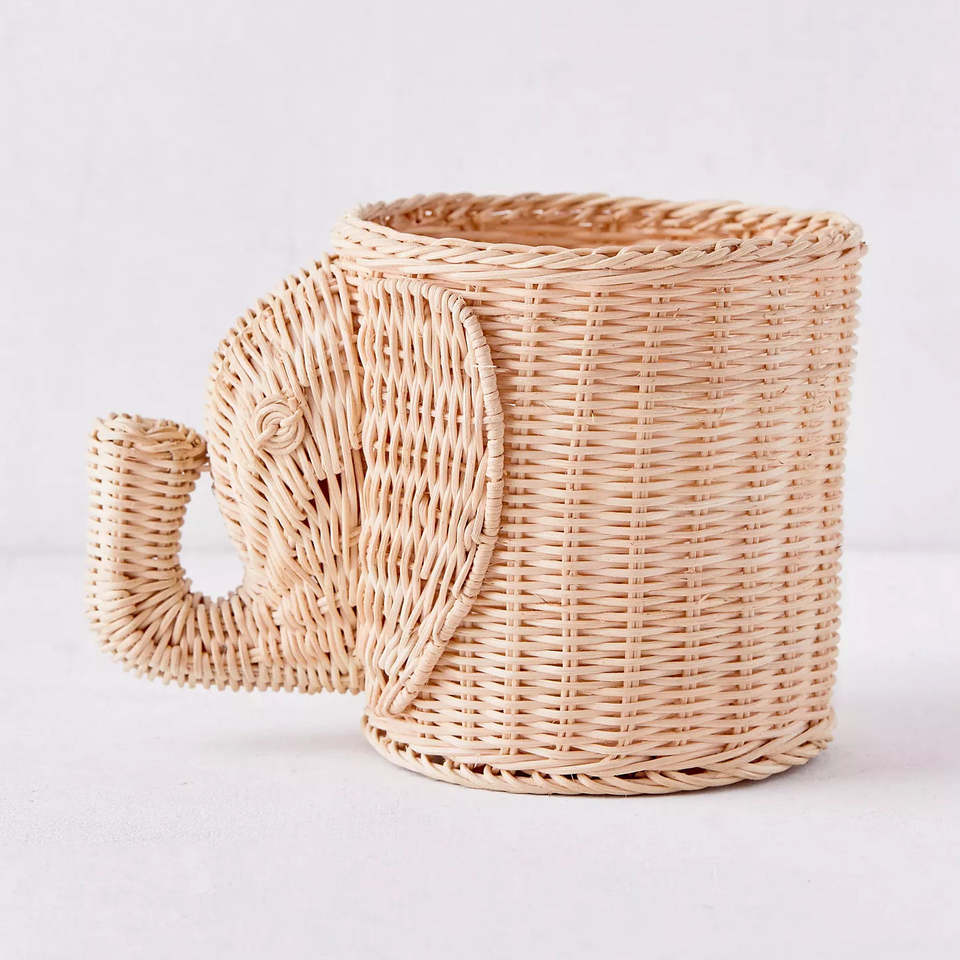 Adorable pot de plante en rotin en forme d'éléphant avec pot animal en osier pour l'affichage de fleurs, jardinière tissée pour la décoration intérieure et extérieure