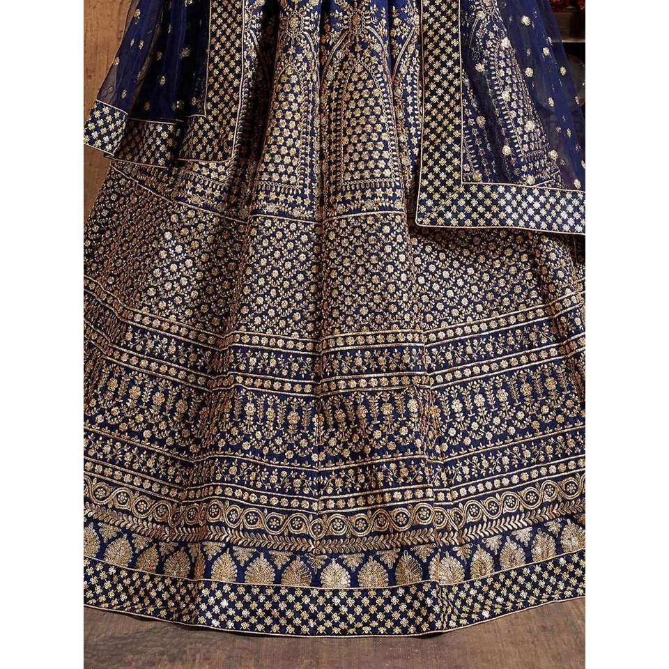 Adorable Paillettes Bleu Marine Soie Brute Lehenga Choli Avec Dupatta