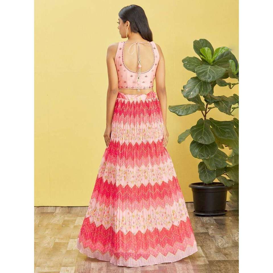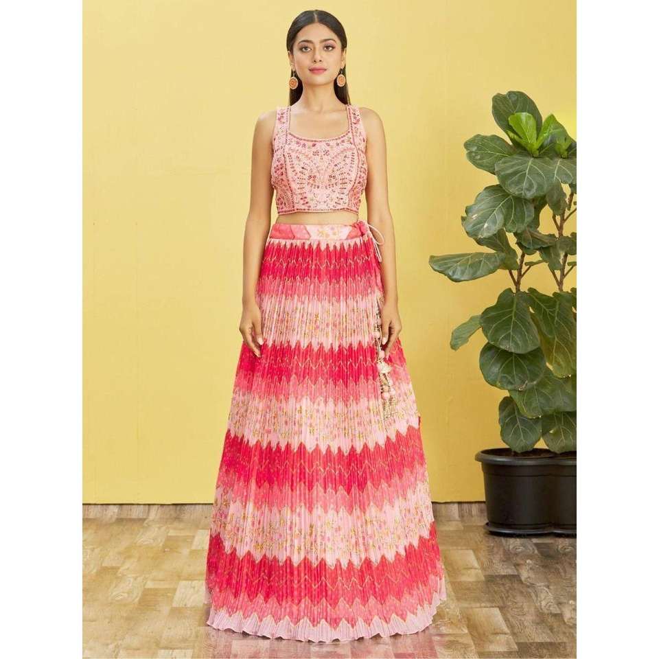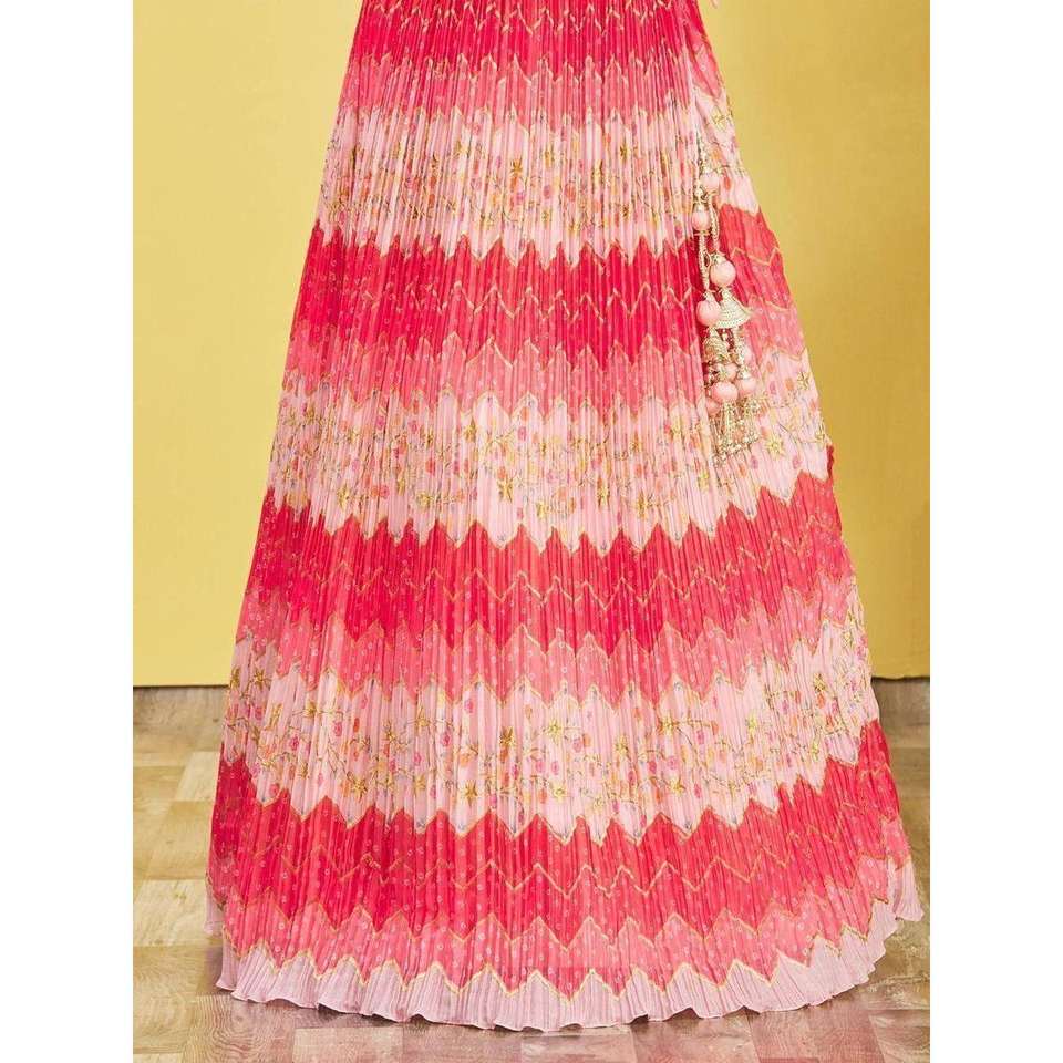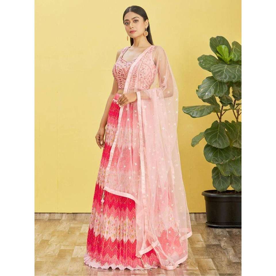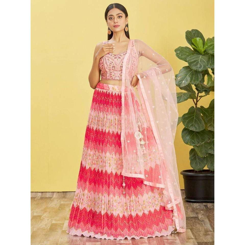 Adorable Lehenga Choli semi-cousu en chinon brodé rose par Zeel Clothing