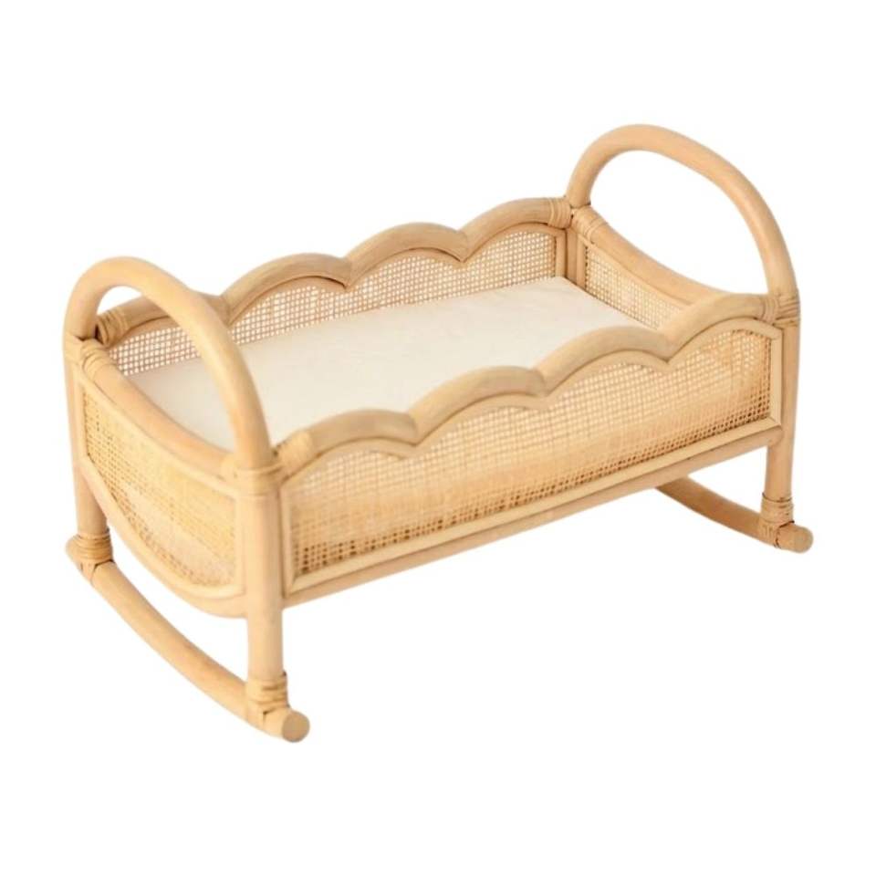 Adorable Rattan Doll Bassinet Rattan Doll Cradle Rocking Doll Bed for Children Role Play Baby Doll Furniture Wholesale