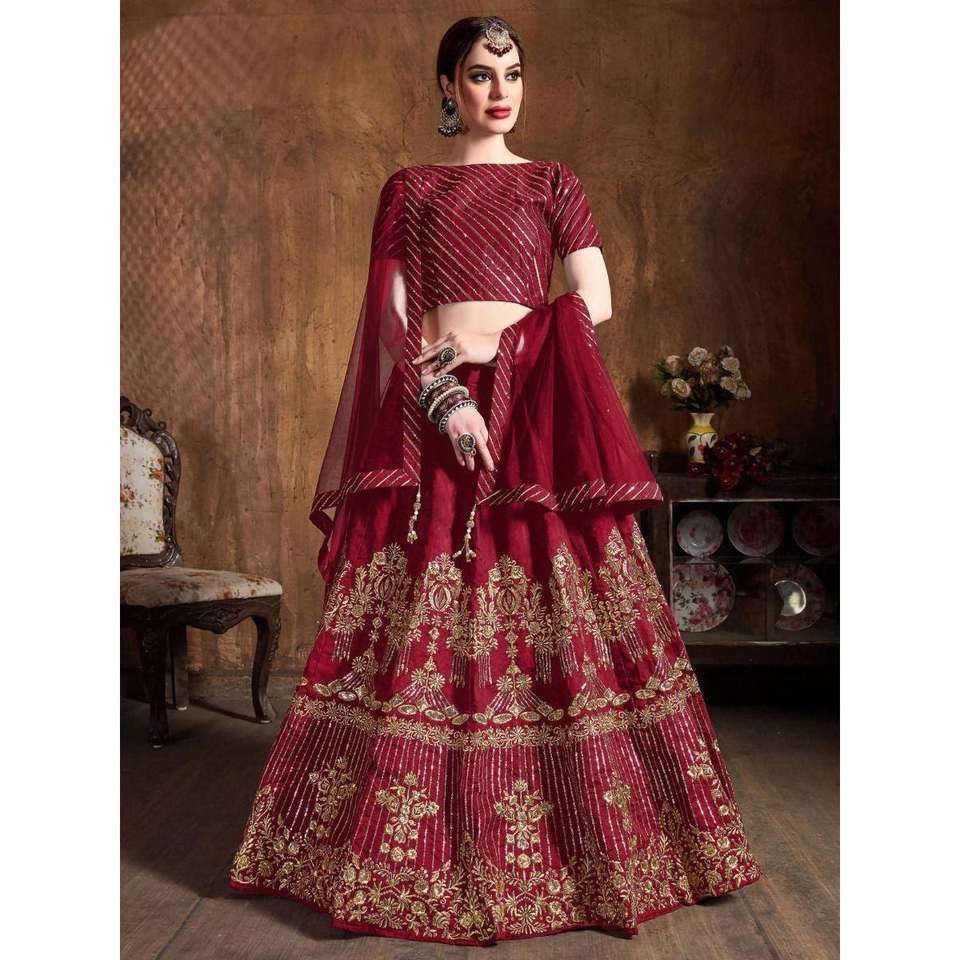 Adorable Red Embroidered Art Silk Wedding Wear Lehenga Choli
