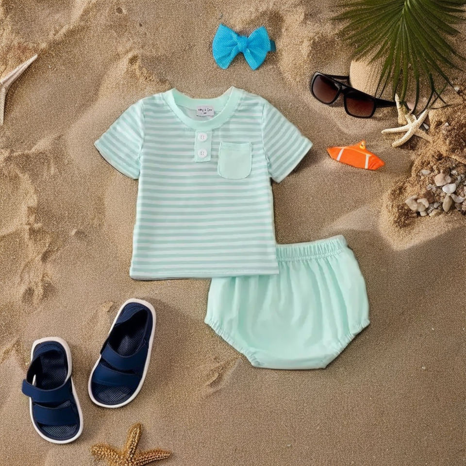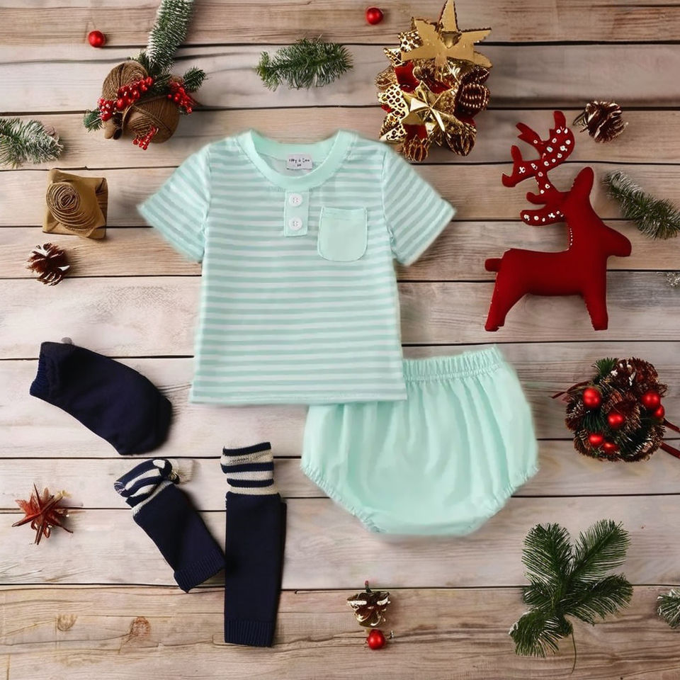 Adorable Soft Mint Stripe Bloomer Set Cozy Classic Striped Look Baby Outfit pour garçons Tissu doux