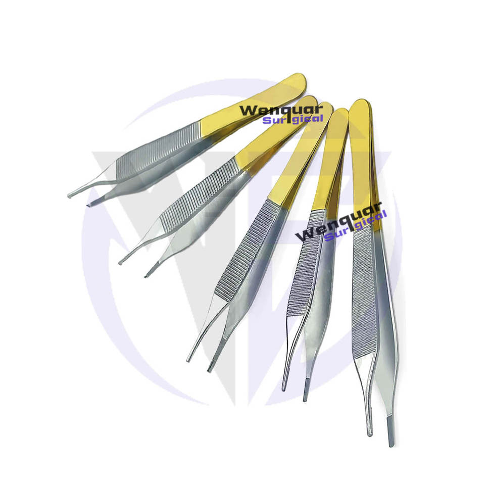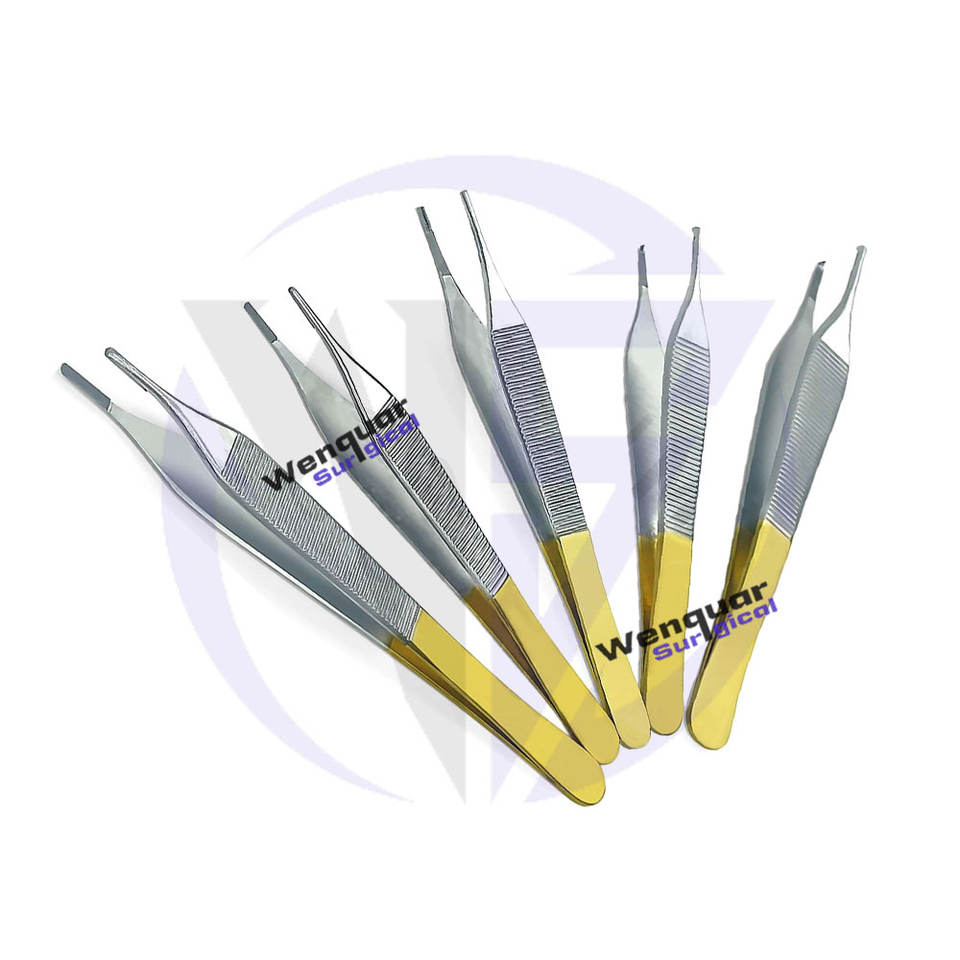 Jeu de 5 pinces de chirurgie plastique Adson T/C pince à épiler droite à pointe fine poignées en acier inoxydable plaqué or Wenquar Surgical