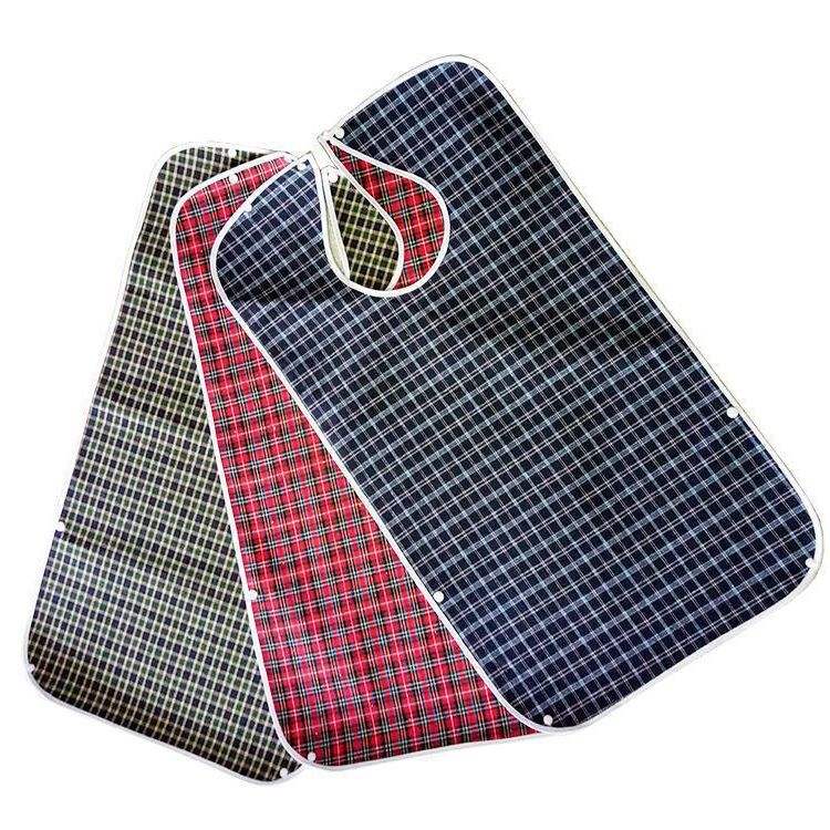 Bavoir imperméable pour adultes, taille unique, pour personnes âgées, équipement de protection avec motif à carreaux, couleur bleue