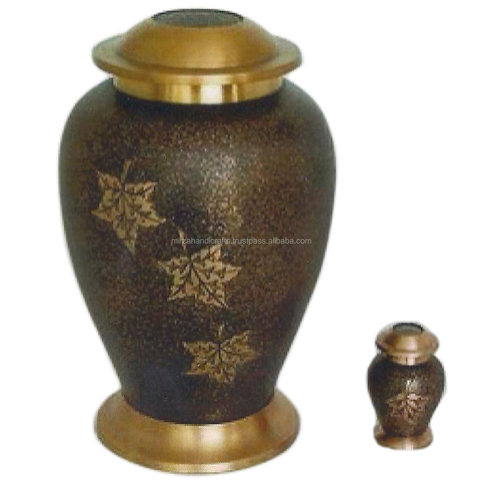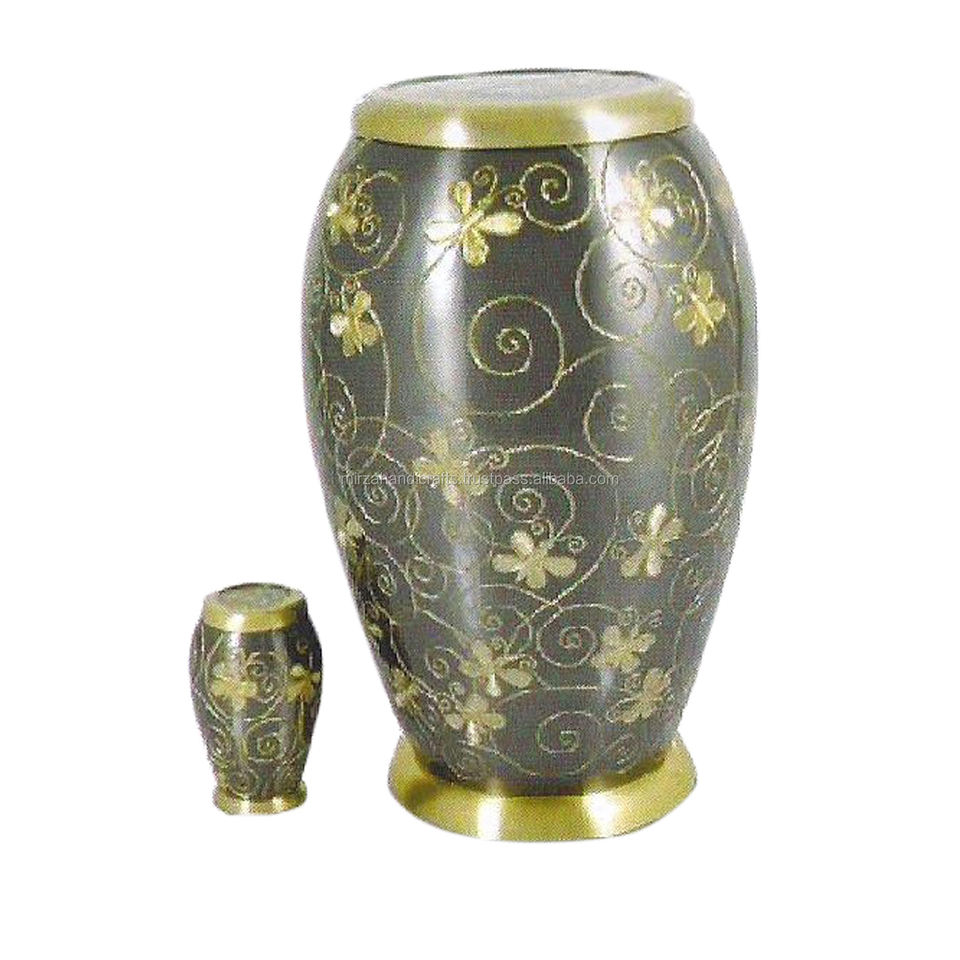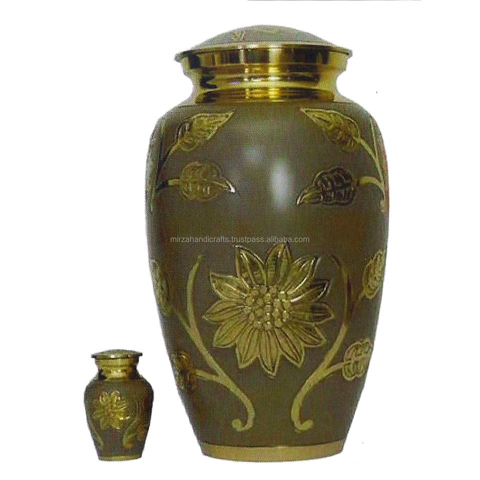 Urne funéraire commémorative de conception de fleurs classiques pour adultes pour urnes de cendres humaines avec jeton fait à la main en laiton et aluminium