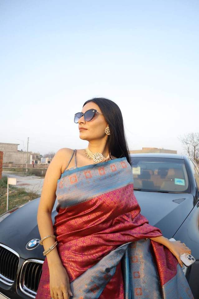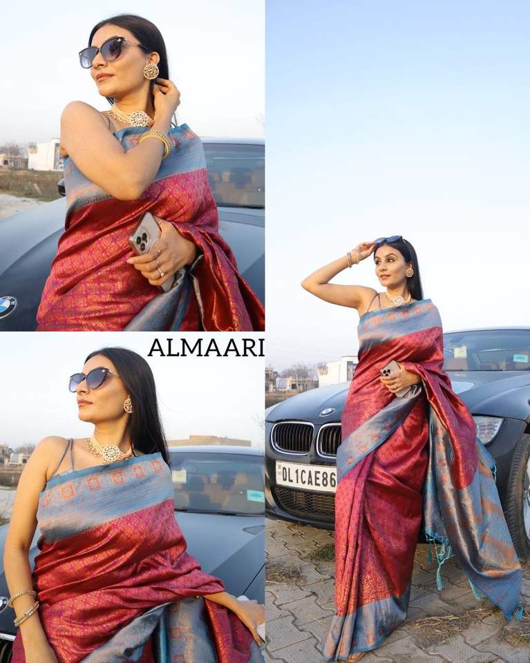 Adulte Evergreen Design Nouvelle Arrivée Élégance Dressing Tendance Soie Saree Avec Chemisier Avec Cuivre Zari Tissage Travail Prix de Gros