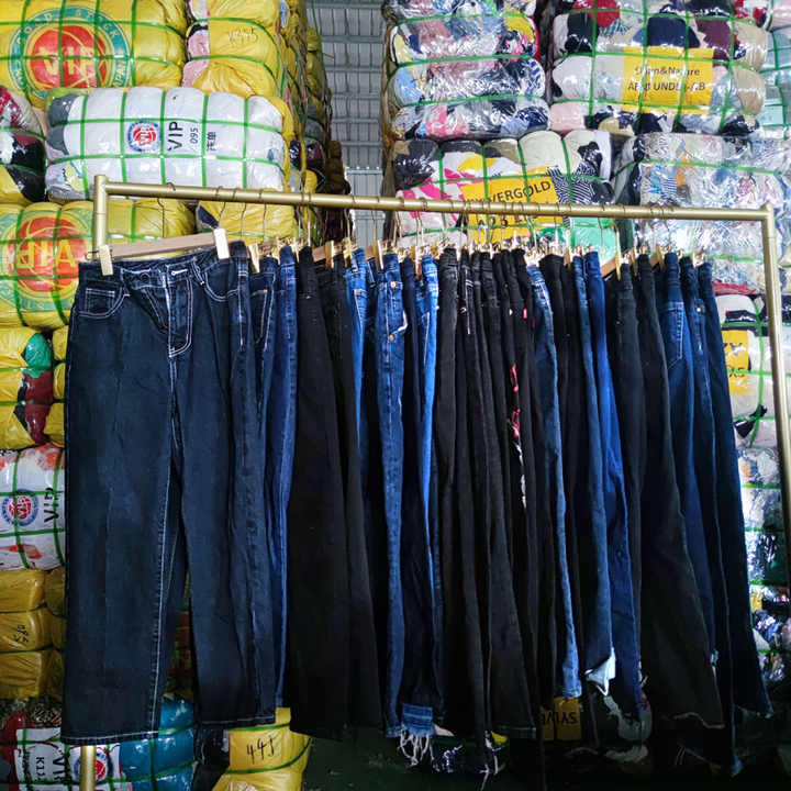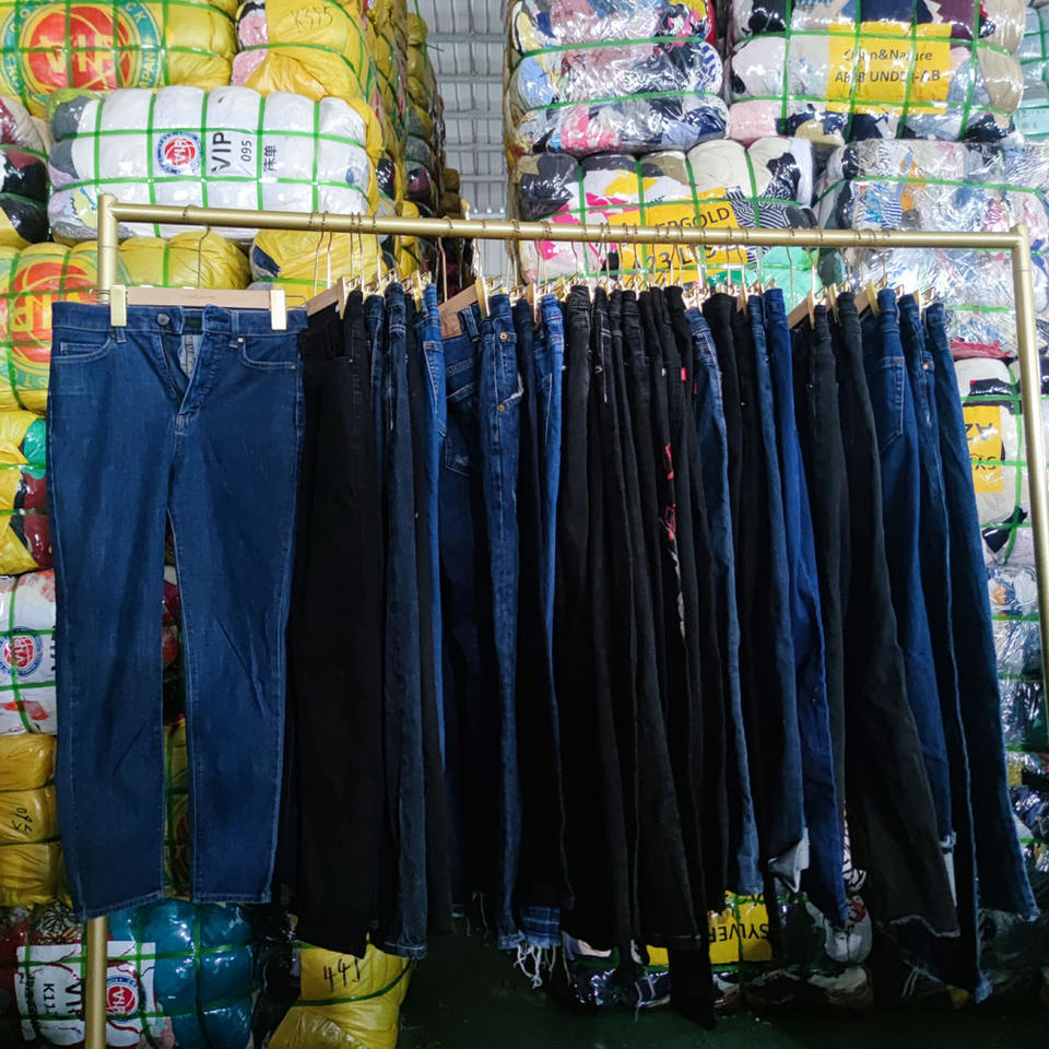 Pantalons en jean d'été d'occasion pour femmes adultes, lots de vêtements usagés