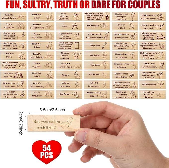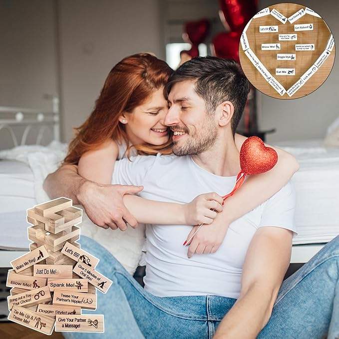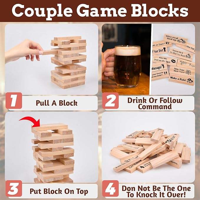 Jeu de société empilable pour adultes The Lust Tower Blocks avec 54 pièces en bois et défis Truth or Dare