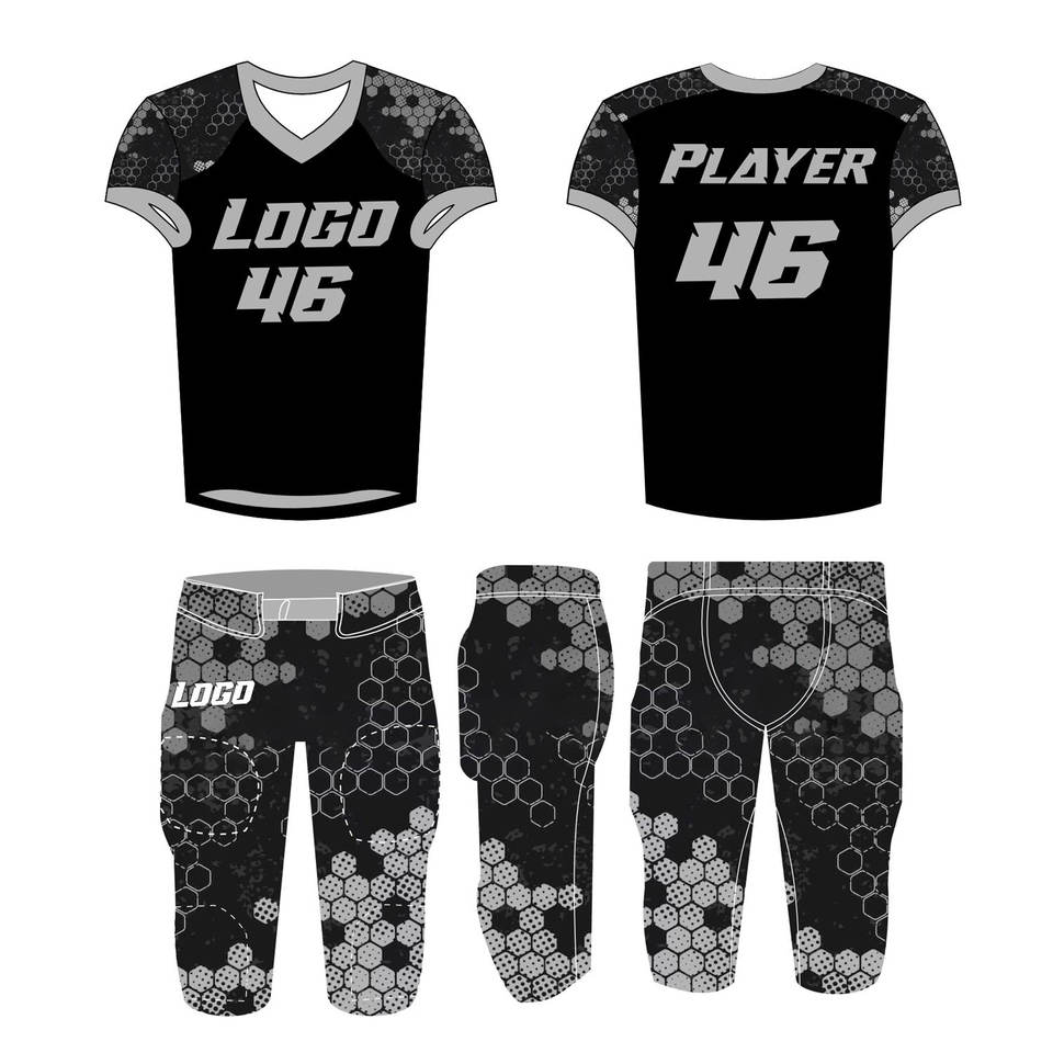 Ensemble d'uniformes de football américain pour équipe adulte, design par sublimation, respirant, avec nom et numéro d'équipe.