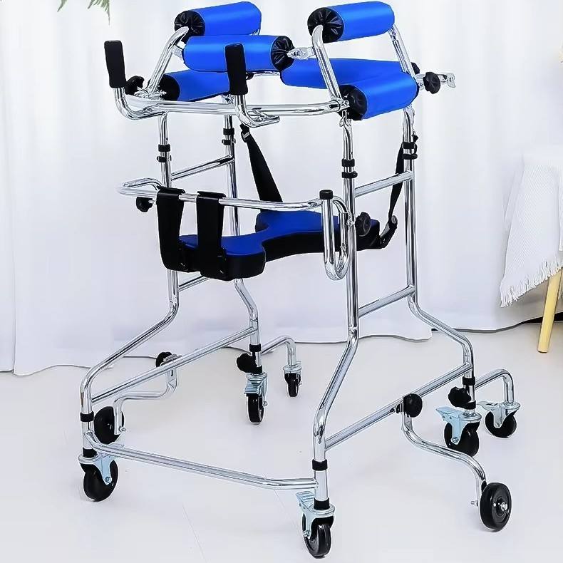 Déambulateur pour adultes avec rembourrage bleu, hauteur réglable, pour la rééducation des membres inférieurs et le soutien à l'entraînement