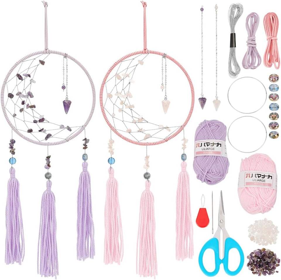 Adultes Débutants Macramé Tenture Murale Lune Etoile Bricolage Macramé Kits Attrape-Rêves pour Décoration Murale de Chambre