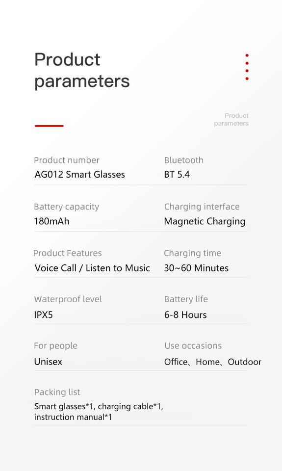 Musique jouant le temps: 6-8h:Batterie: 180mAh