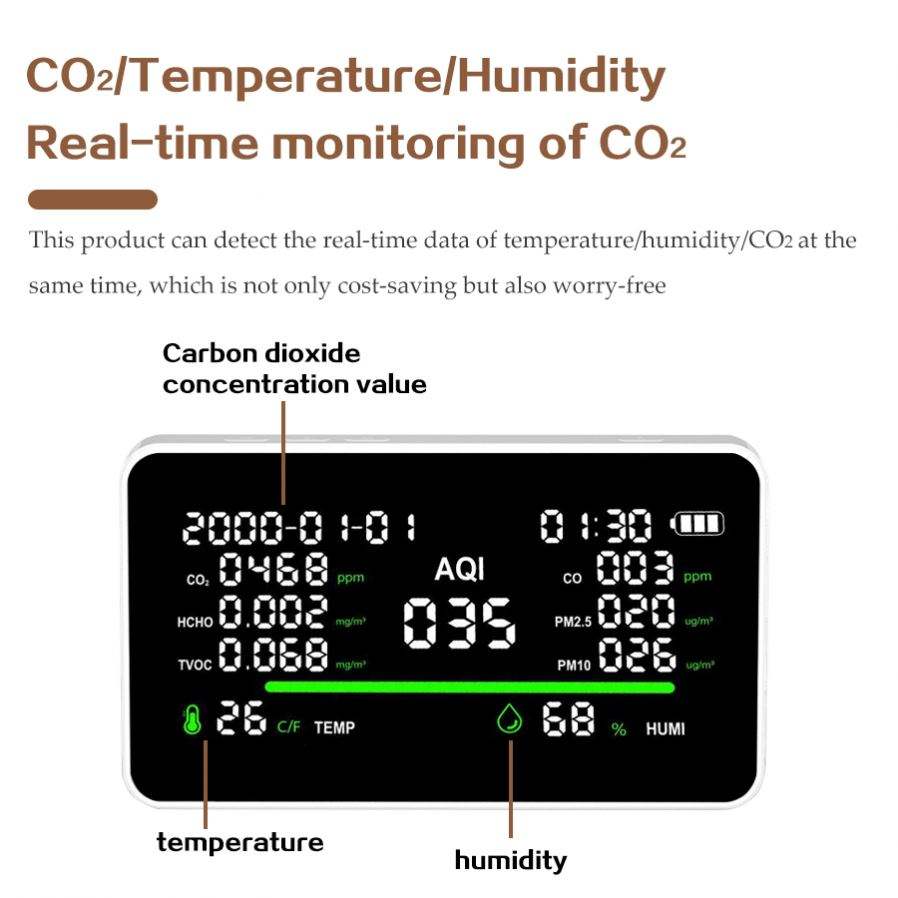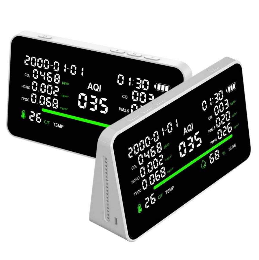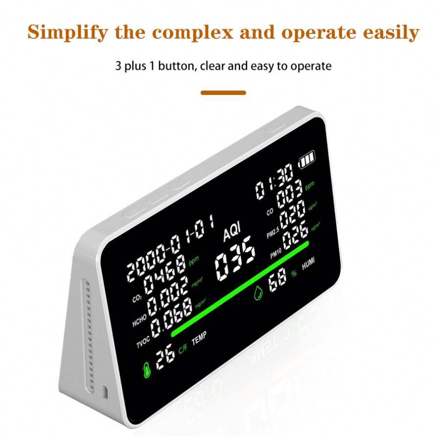 Plage de détection HCHO, TVOC:HCHO : 0,000-1,999 mg/m³ ; COVT : 0,000-9,999 mg/m³