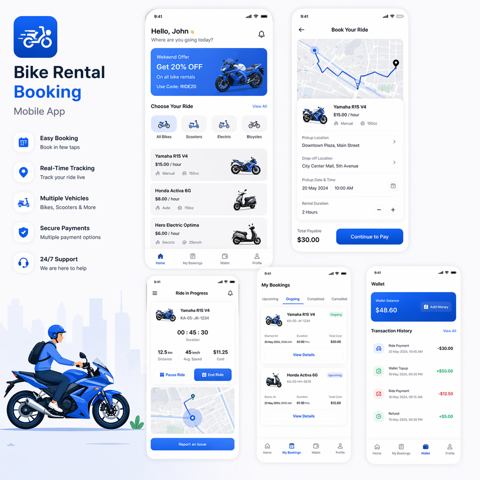 Application mobile avancée de réservation de vélos avec suivi GPS en temps réel, réservations instantanées et gestion intelligente de la flotte