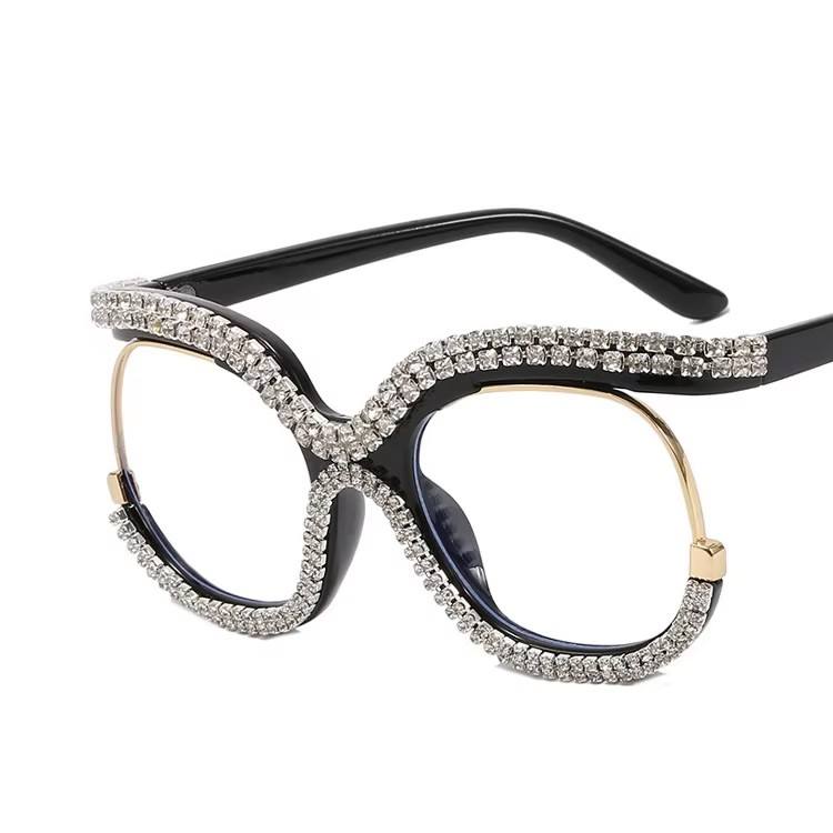 Monture de Lunettes Avancée Incrustée de Briques, Tendance et Luxueuse pour Femmes, Anti-Lumière Bleue