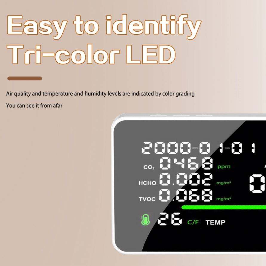 Plage de détection HCHO, TVOC:HCHO : 0,000-1,999 mg/m³ ; COVT : 0,000-9,999 mg/m³