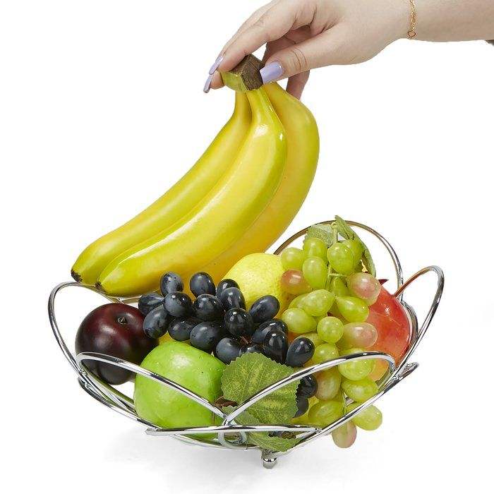 Panier à fruits moderne en fer forgé de qualité supérieure pour le rangement sur comptoir de cuisine et salle à manger, avec un attrait décoratif élégant