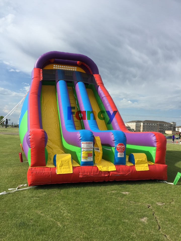 Toboggan gonflable de château de maison de saut de dessin animé personnalisé avancé/châteaux gonflables de hop heureux/toboggan gonflable sec de trois toboggans à vendre