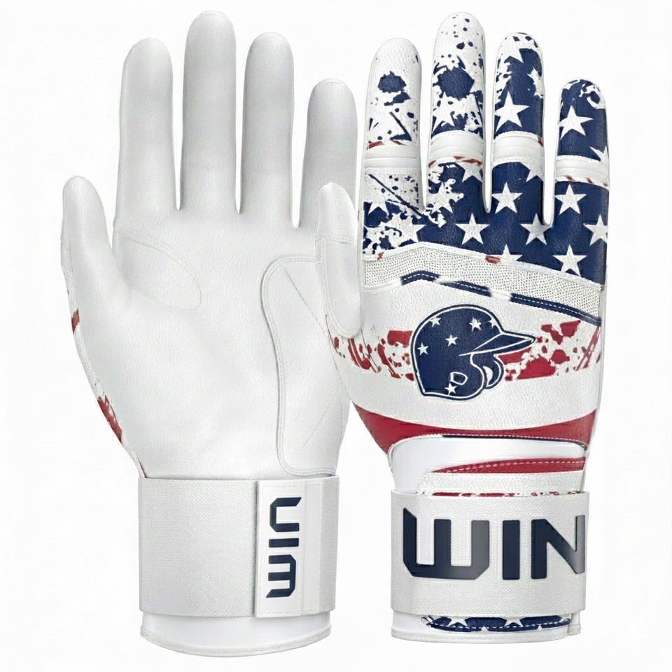 Gants de baseball et de softball personnalisés à thème de drapeau avancés, prêts à l'impression, résistants aux déchirures, antidérapants, ajustés, gants de frappe de baseball