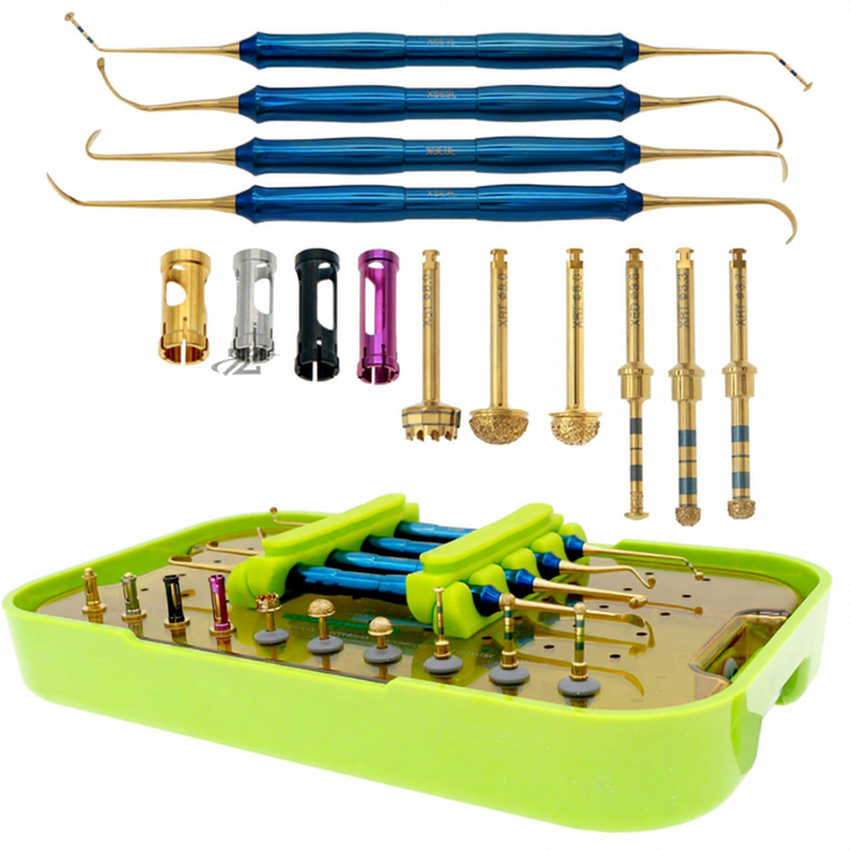Kit avancé en acier pour lifting sinusal dentaire manuel, comprenant forets latéraux, butées et instruments d'élévation, pour chirurgie implantaire Zoha Surgico CE