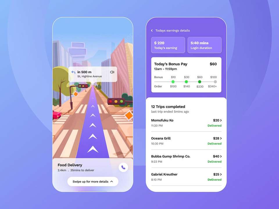 Application de chauffeur tout-en-un pour livraisons, trajets et suivi GPS