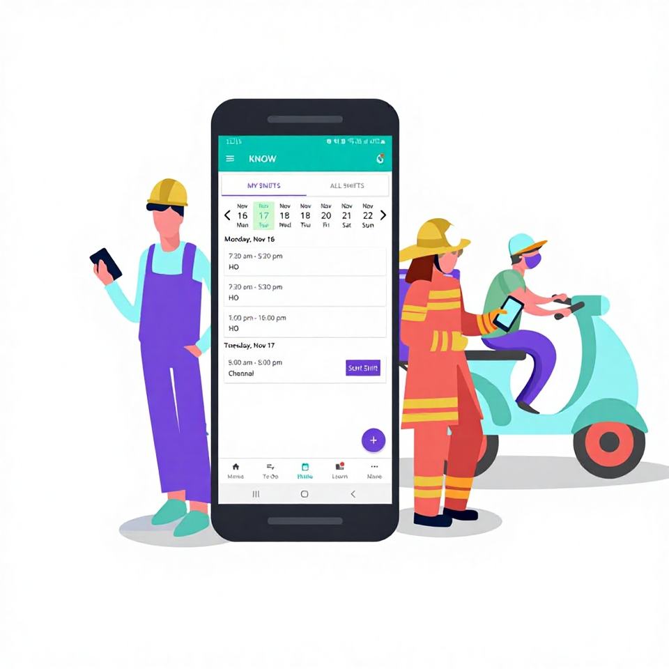 Employee time tracking, Shift start, shift end mobile application