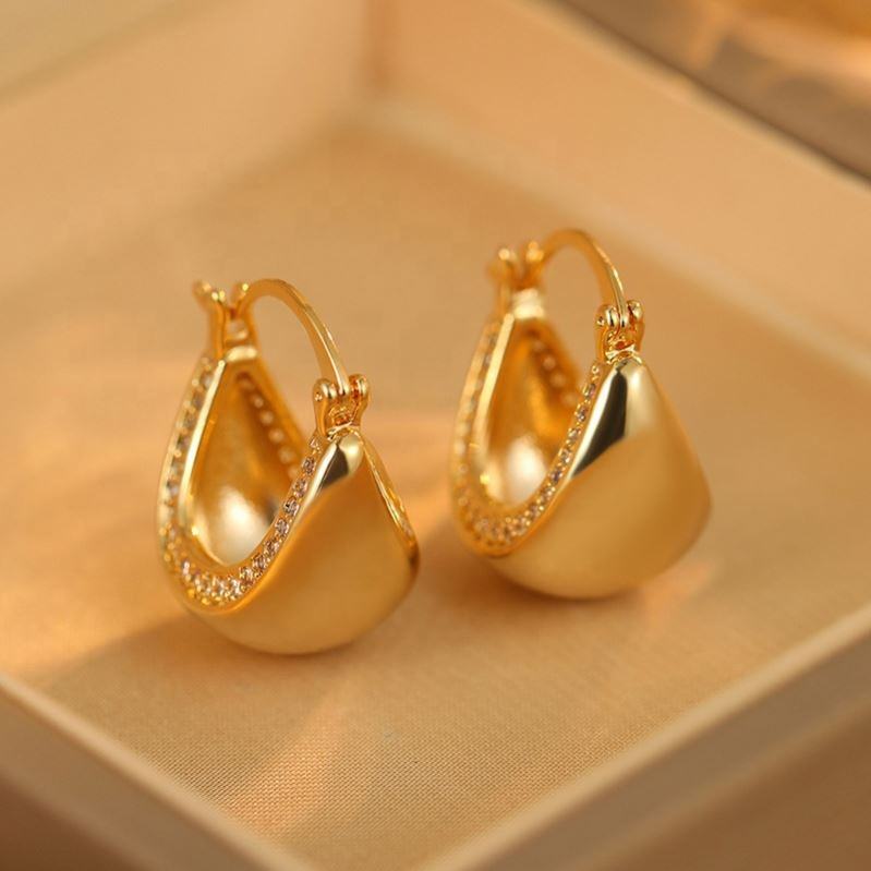 Boucles d'oreilles clous géométriques de style rétro français avancé, incrustées de zircon, plaquées or, luxe