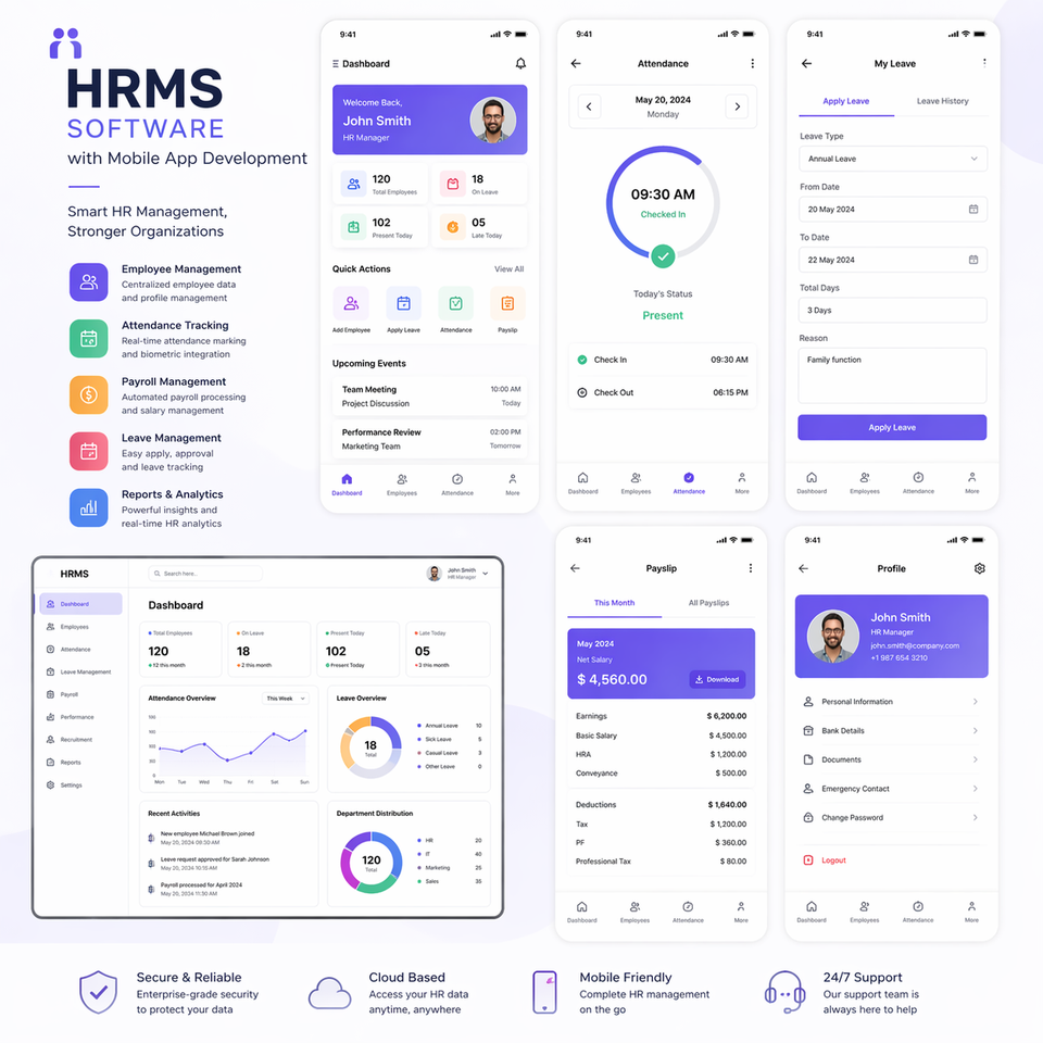 Advanced HRMS Software with Mobile App Development, Employee Attendance, Payroll Management & Workforce Automation